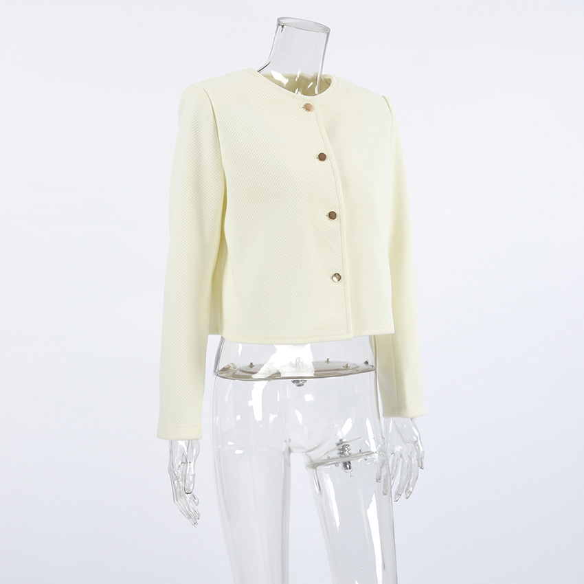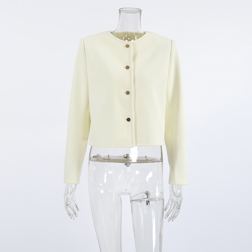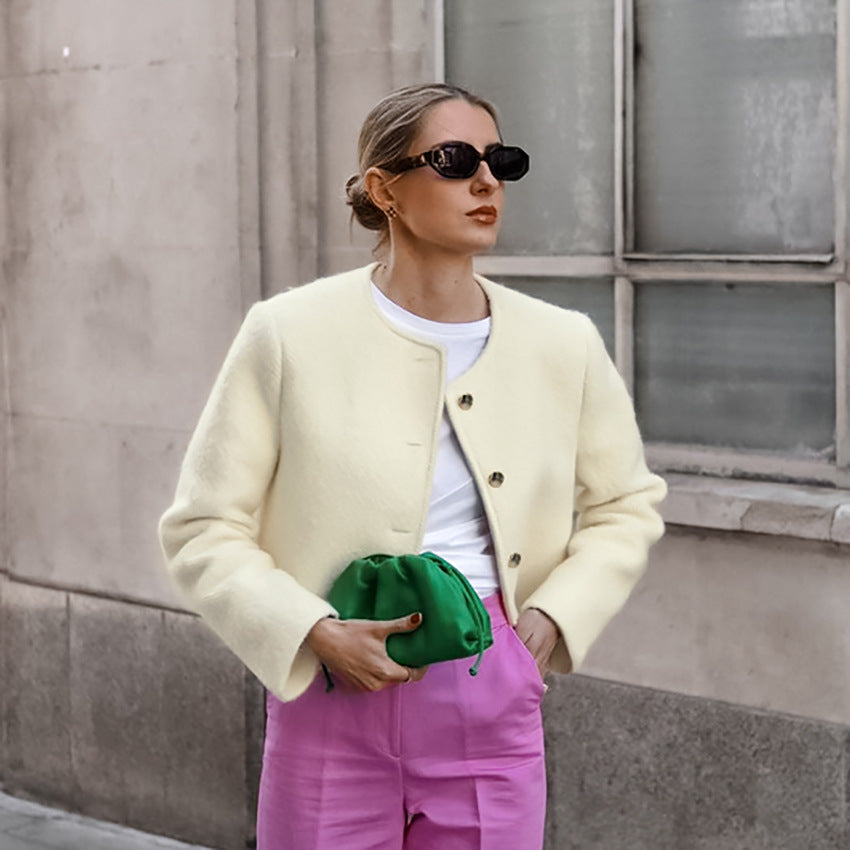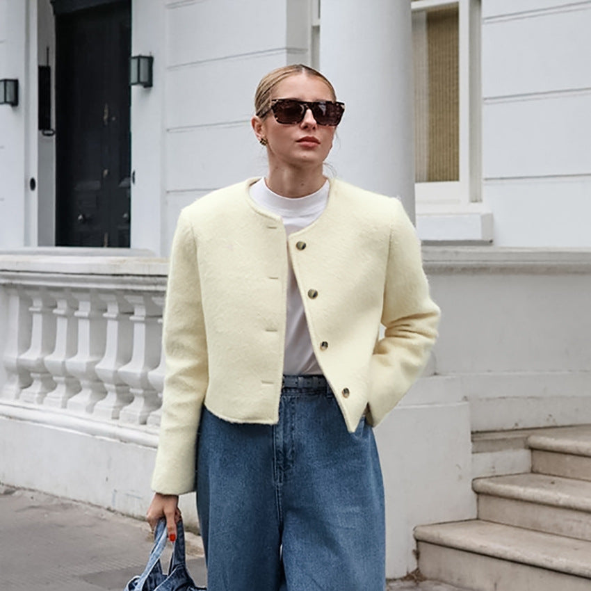 Autumn Elegant Three Dimensional Slim Fit Niche Apricot Woolen Round Neck Office Long Sleeve Short Coat Women
