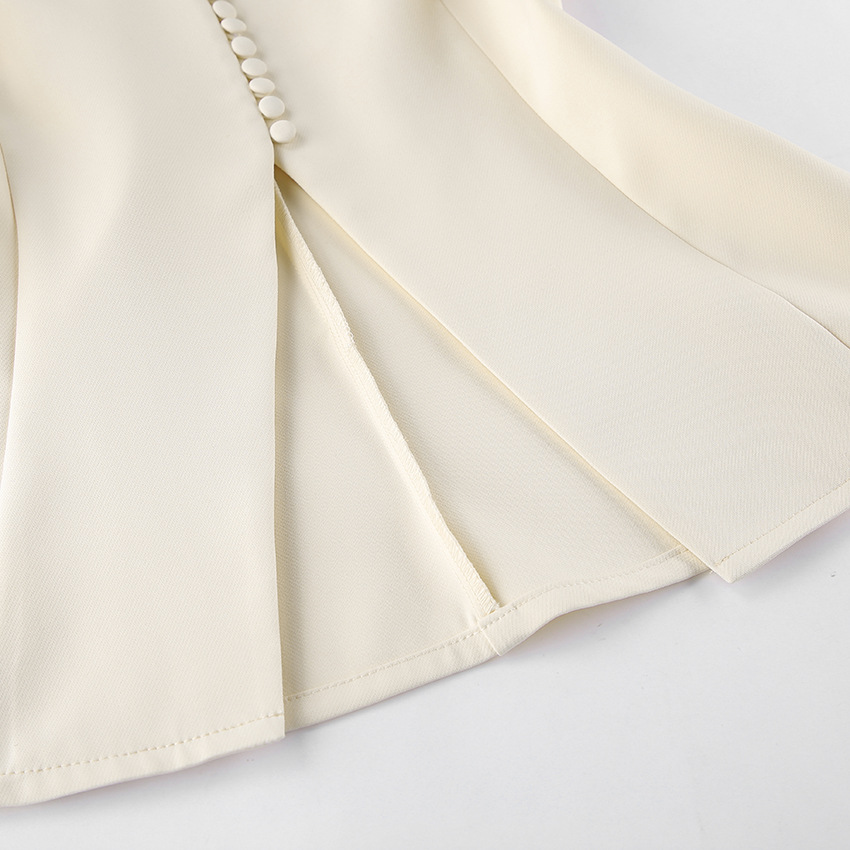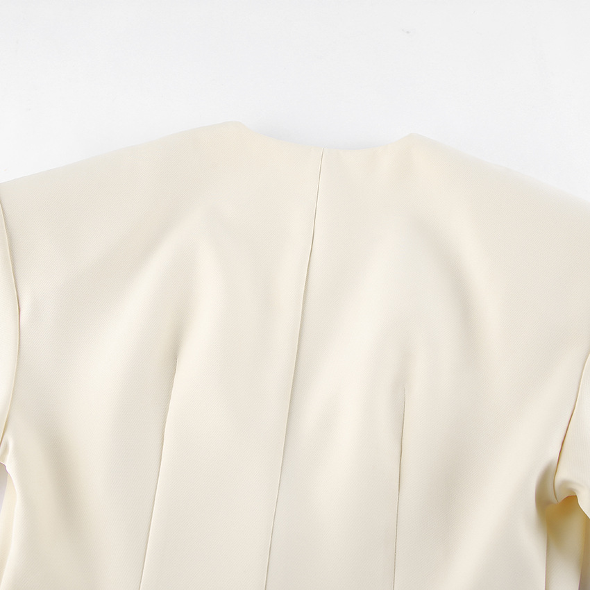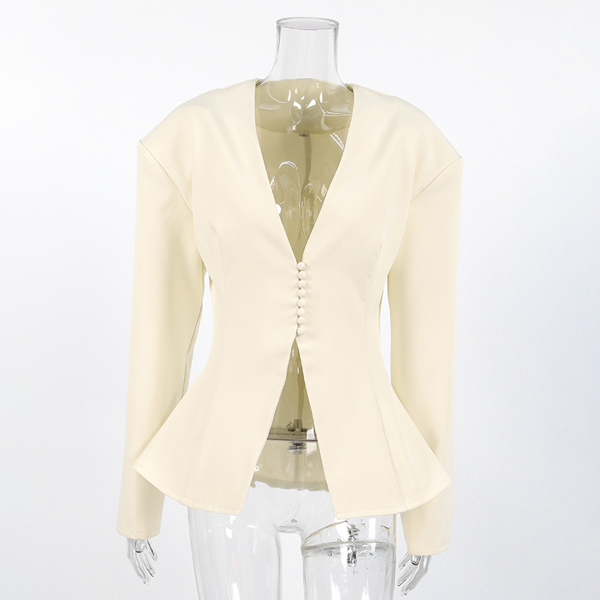 Autumn Niche Tight Waist V neck Long Sleeve Blazer Women Beige Casual