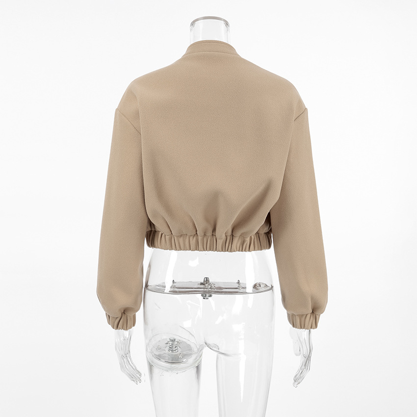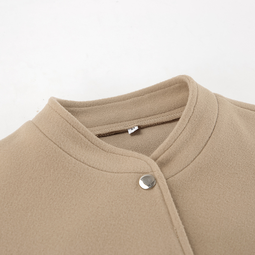 Autumn Winter Flight Jacket Khaki Thick Small Stand Collar Woolen Coat Office Women Clothing