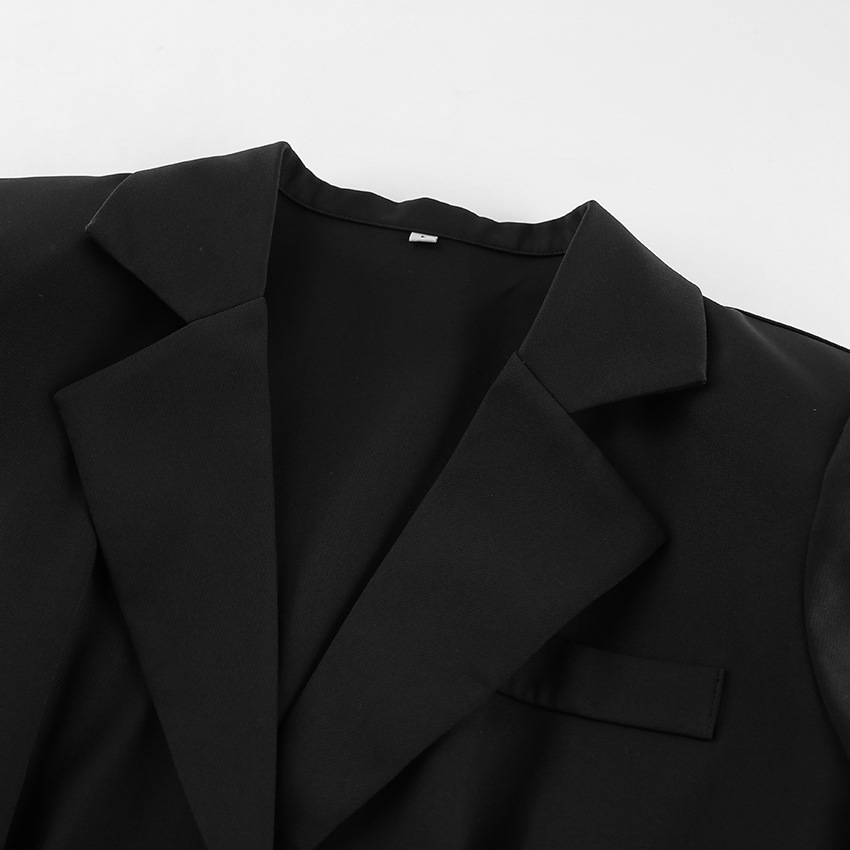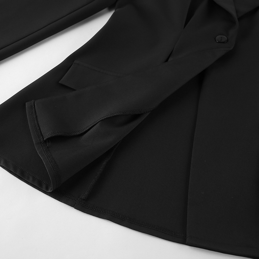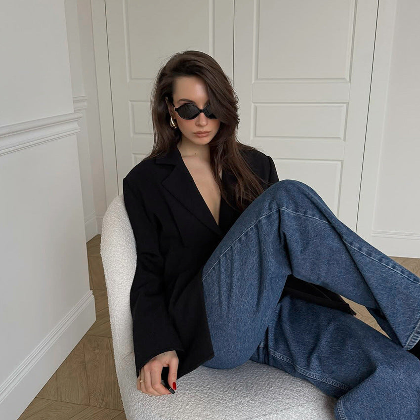 Autumn Winter Retro Black Elegant Slim Blazer Casual Tailored Collar Thin Top