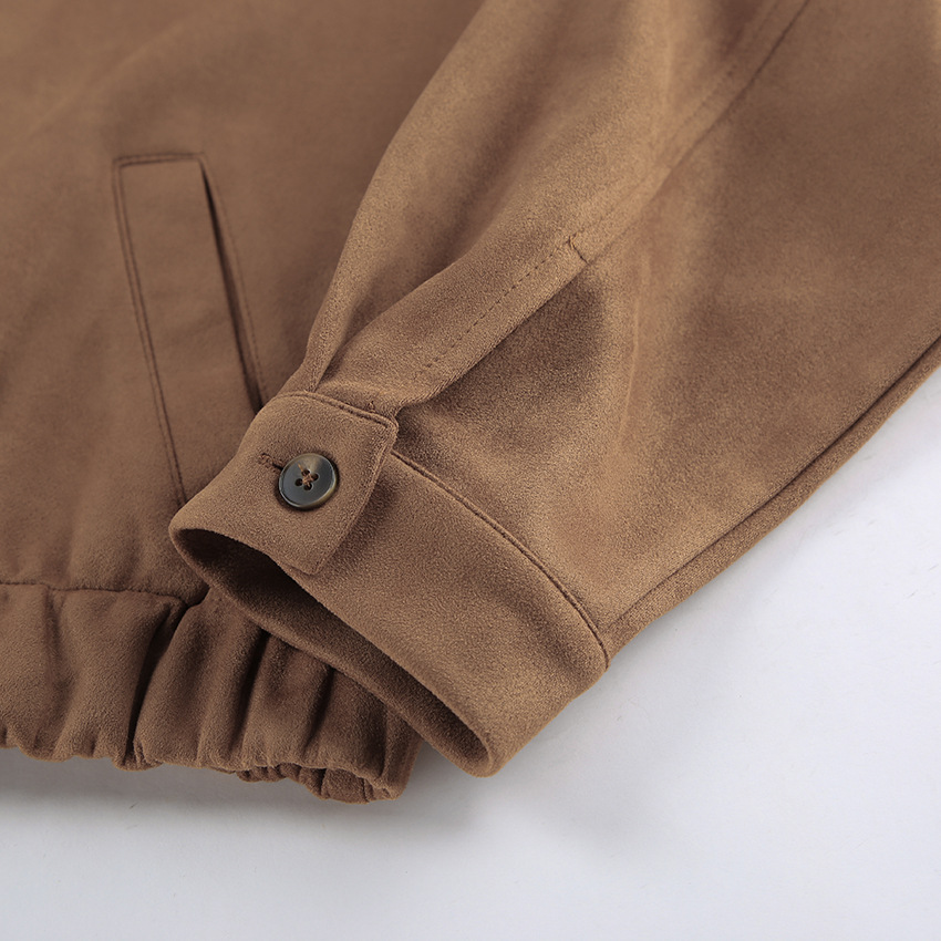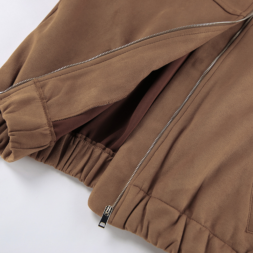 Autumn Winter Retro British Leather Coat Women Loose Zip Suede Fabric Jacket