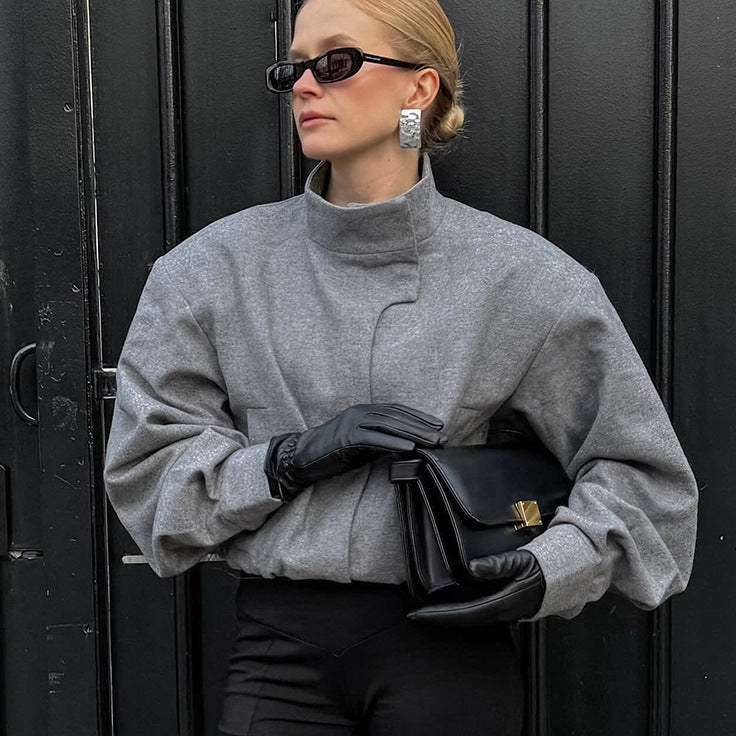 Autumn Winter Small Stand Collar Short Temperamental Loose Woolen Coat Idle Women Clothing