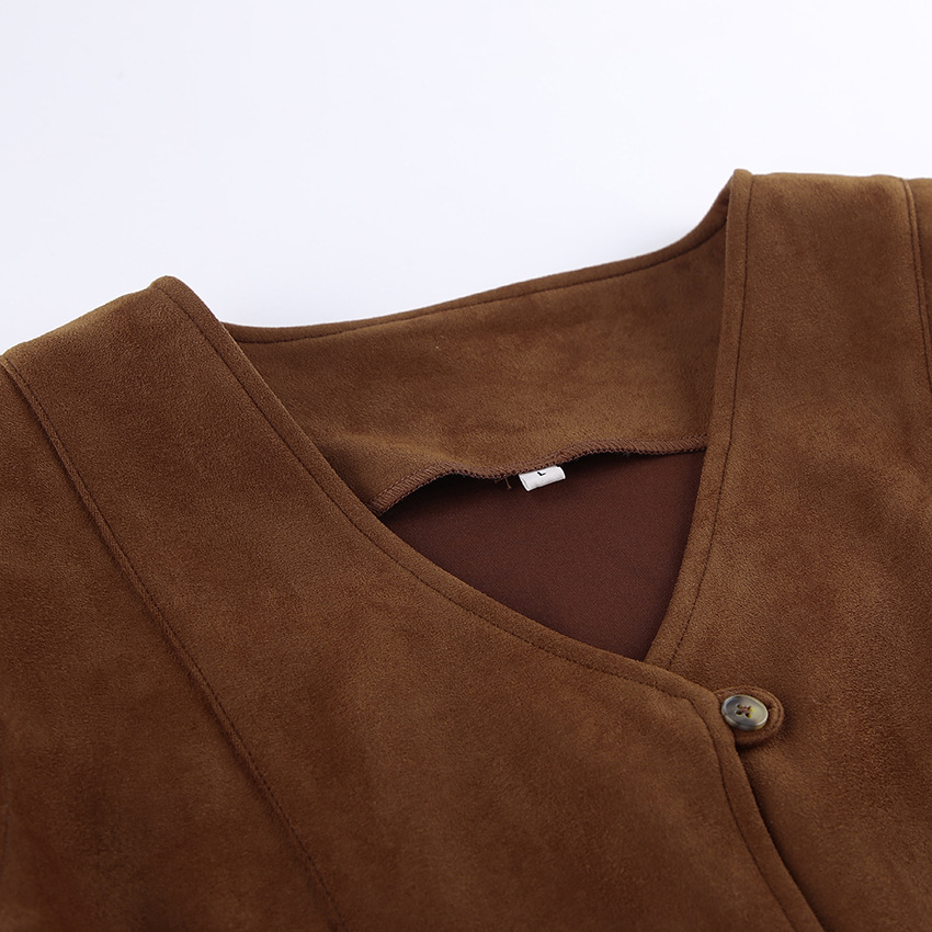Autumn Women Clothing Coat Suede Matte Casual Short Retro British V neck Bandage Vest