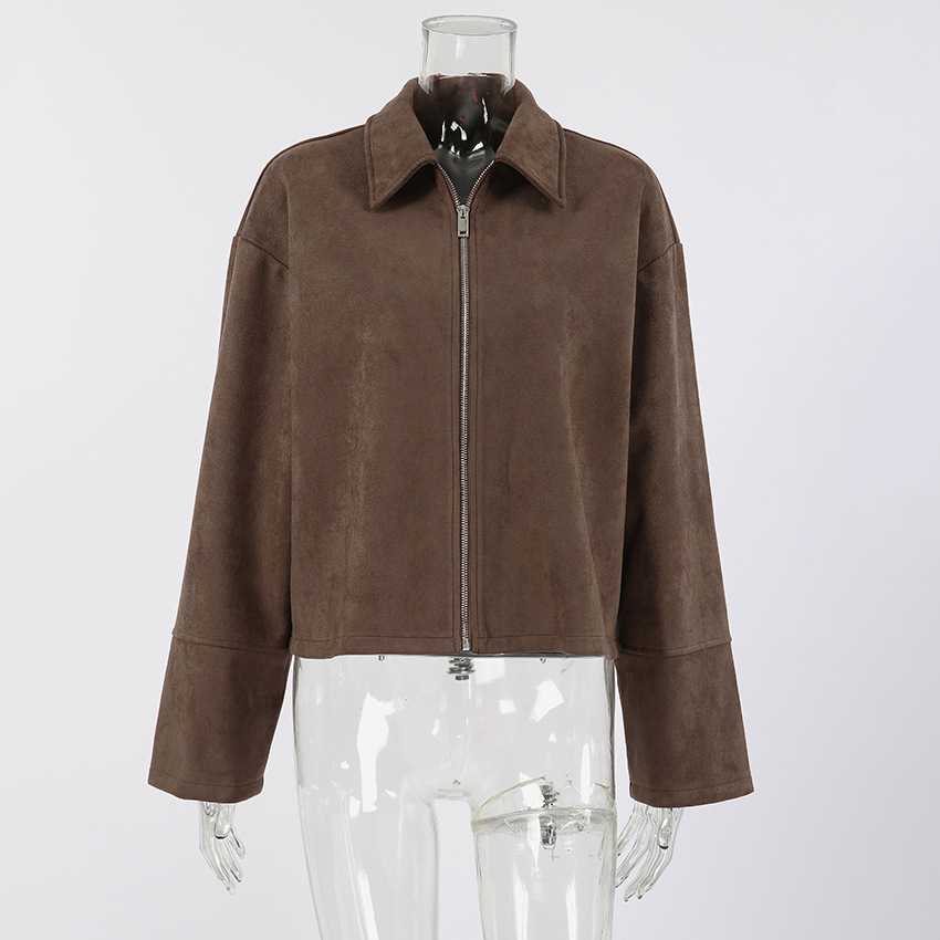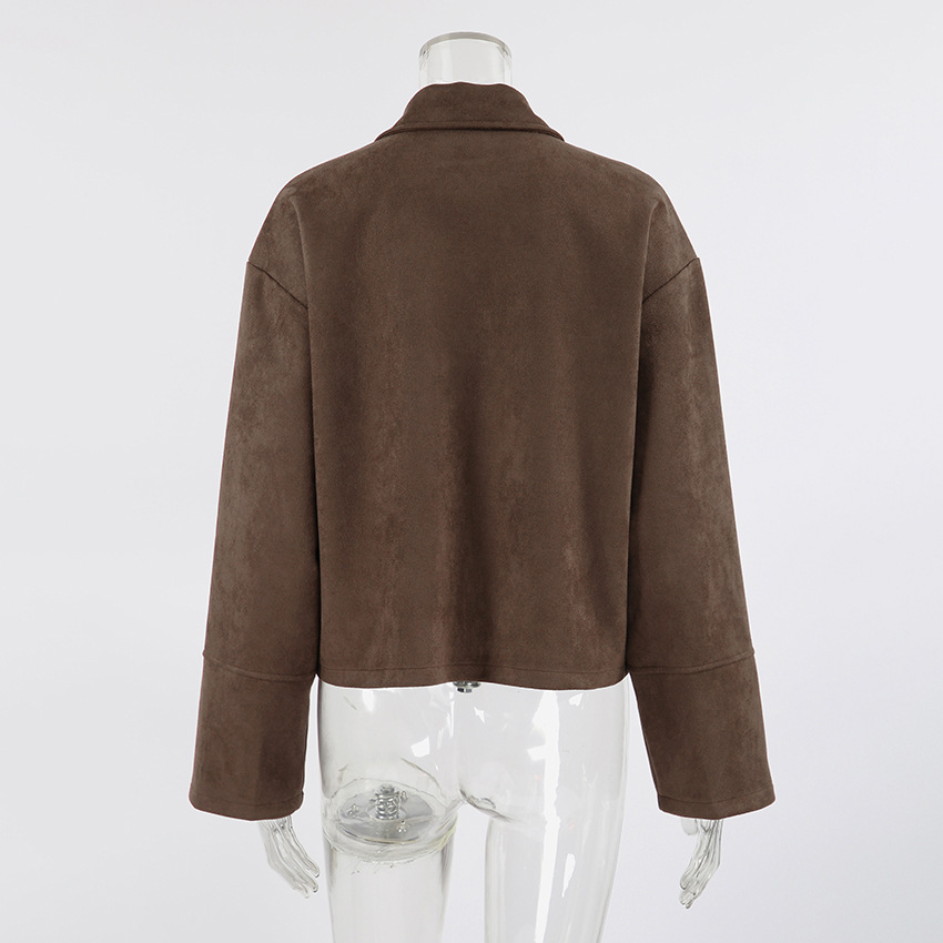 Brown Suede Collared Baggy Coat High Sense Autumn Winter Maillard Small Coat