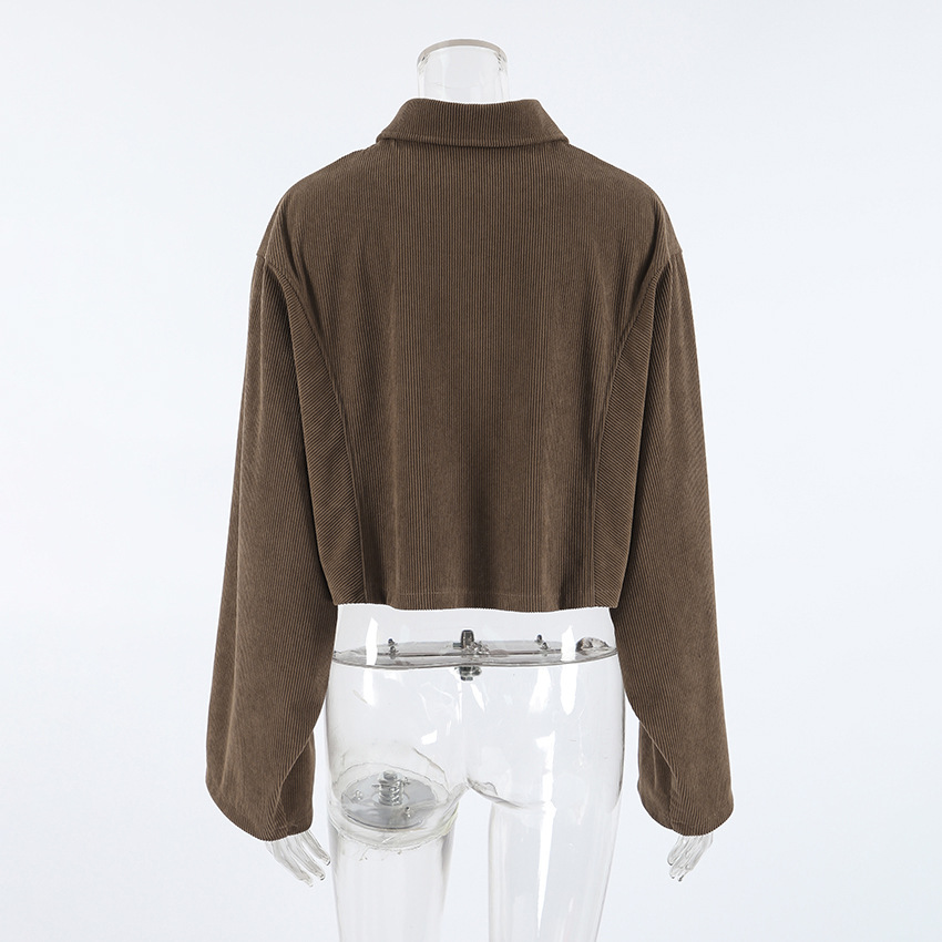 Early Autumn Coat Women Corduroy Retro Maillard Long Sleeve Trendy Casual All Matching Short Cardigan