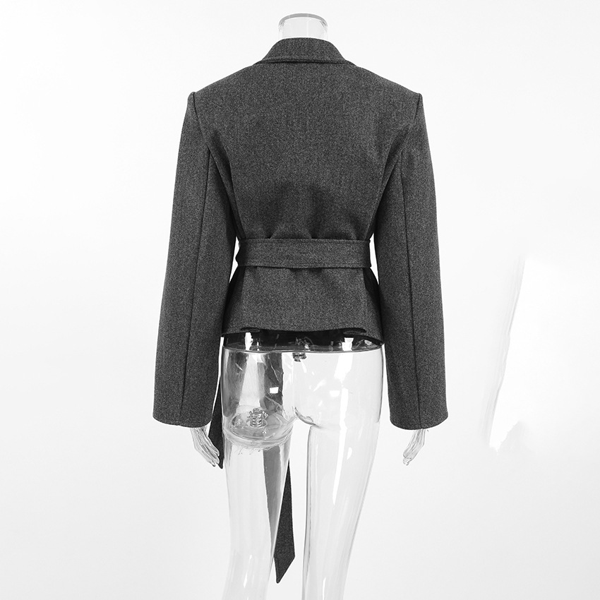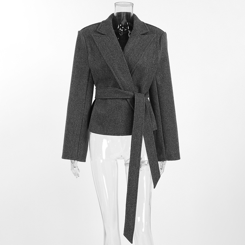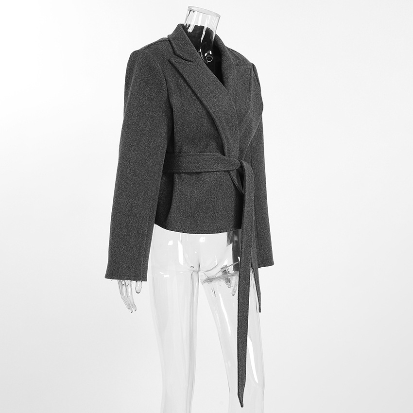 Fall Winter Short Blazer Women All Matching Youthful Looking Lace up Waist Woolen