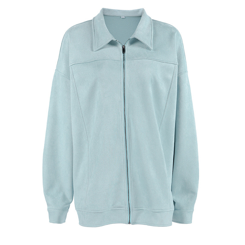 Retro Leather Coat Women Niche Blue Cool Feeling High Street Fashionable Zipper Autumn Winter Suede Jacket