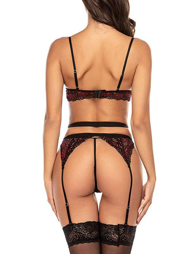 Sexy Women Clothing Lace Sexy Underwear Deep V Plunge Plunge Halter Lace Pajamas
