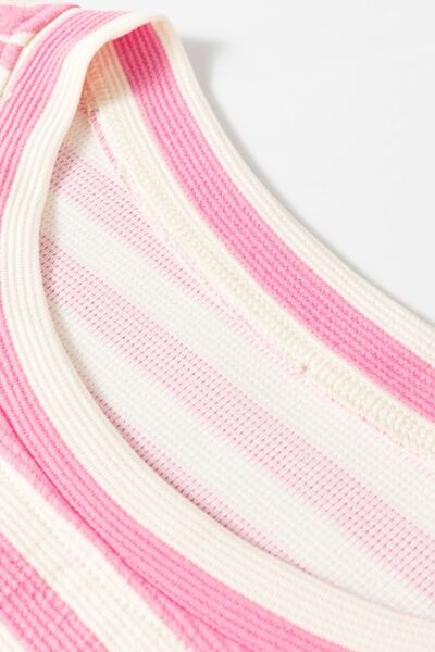 Striped Round Neck T-Shirt and Drawstring Shorts Set
