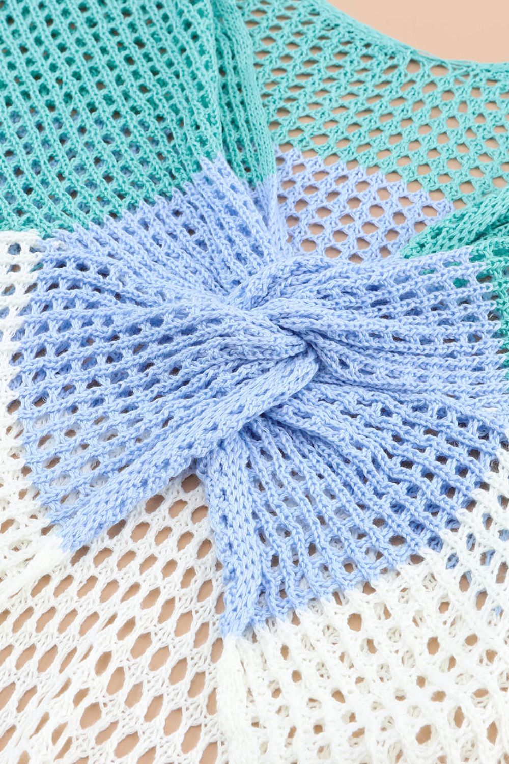 Back To School Sweater - Twisted Back Color Block Long Sleeve Knit Cover Up