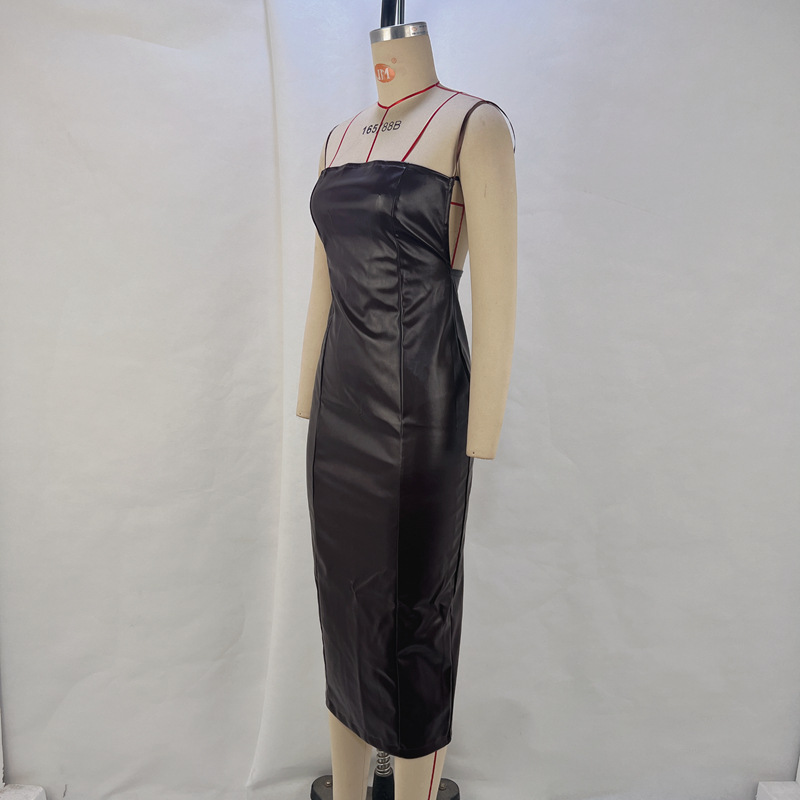 Women Clothing Autumn Winter Sling Backless Slim Fit Hip Split Dress Women