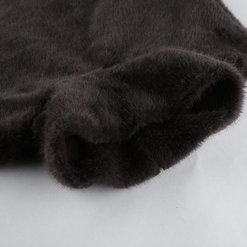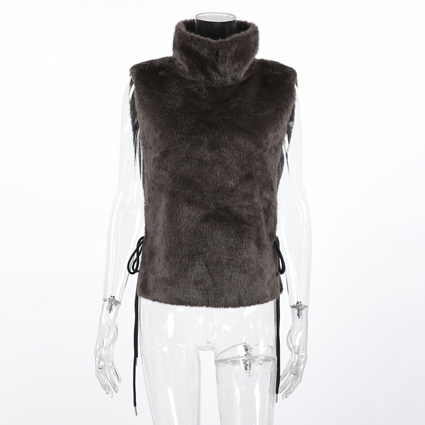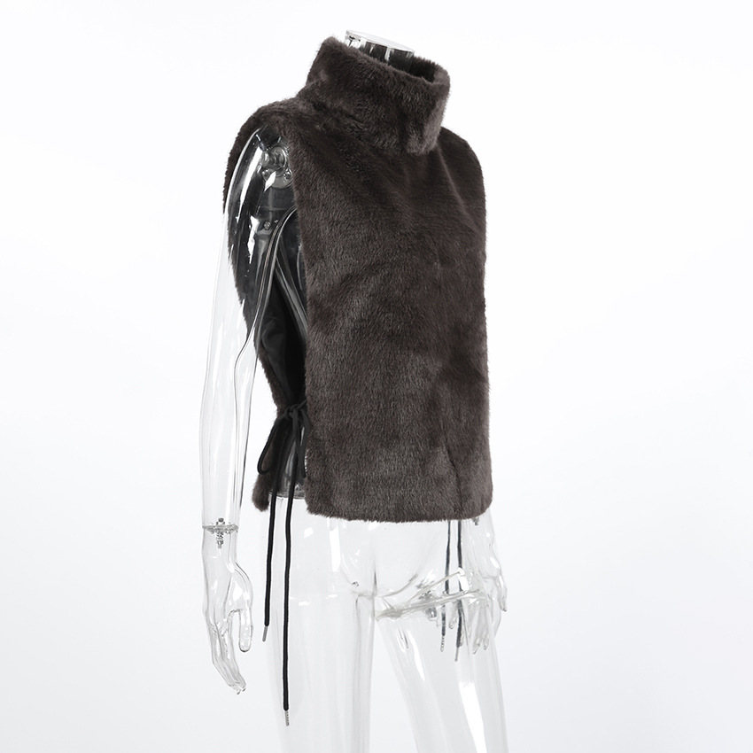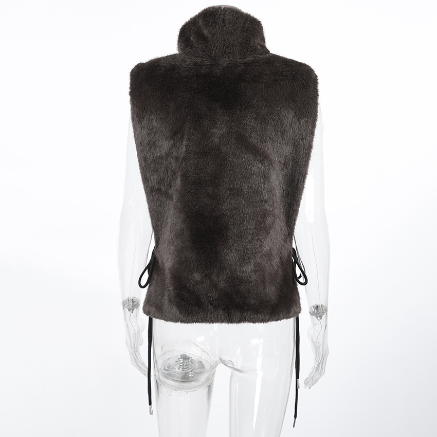 Women Clothing Autumn Winter Solid Color Half Collar Furry Waistcoat Sleeveless Top Vest
