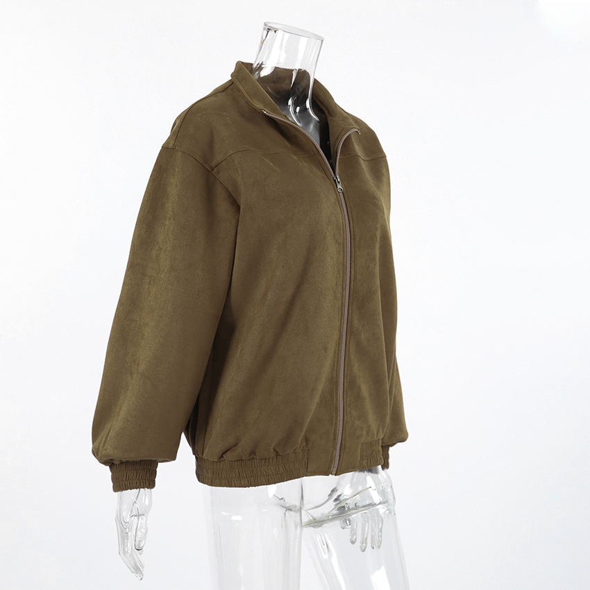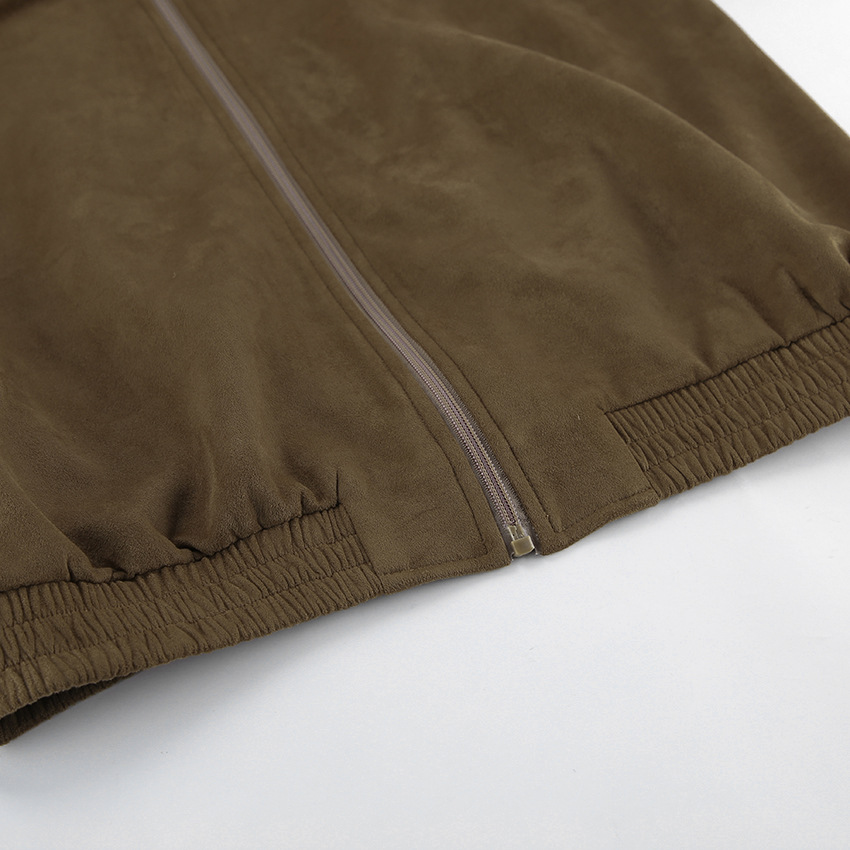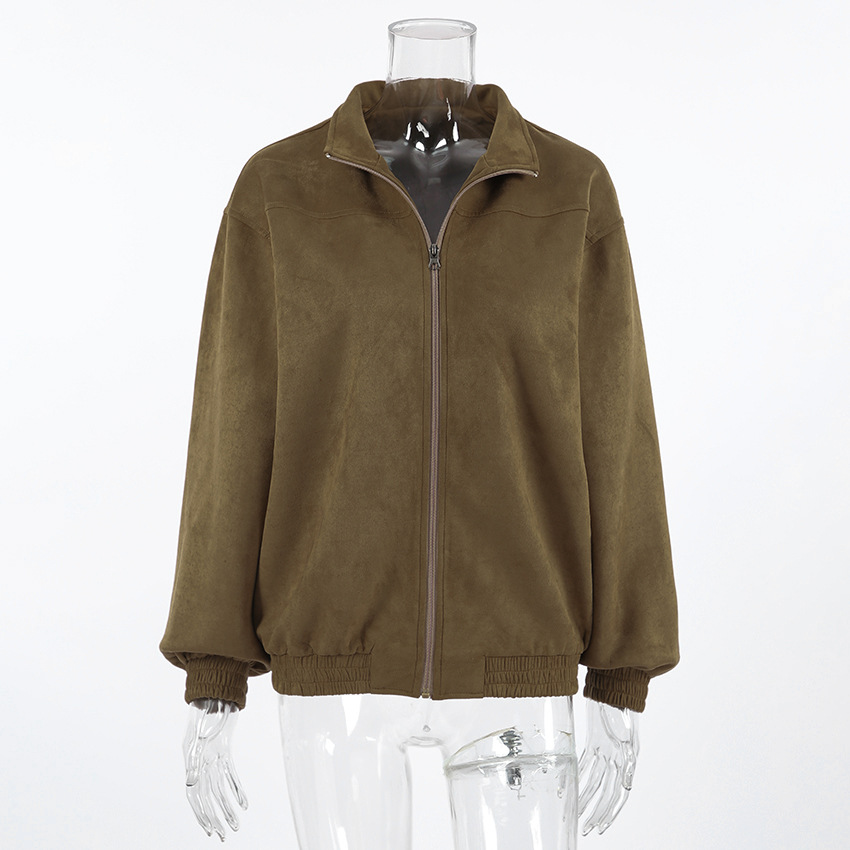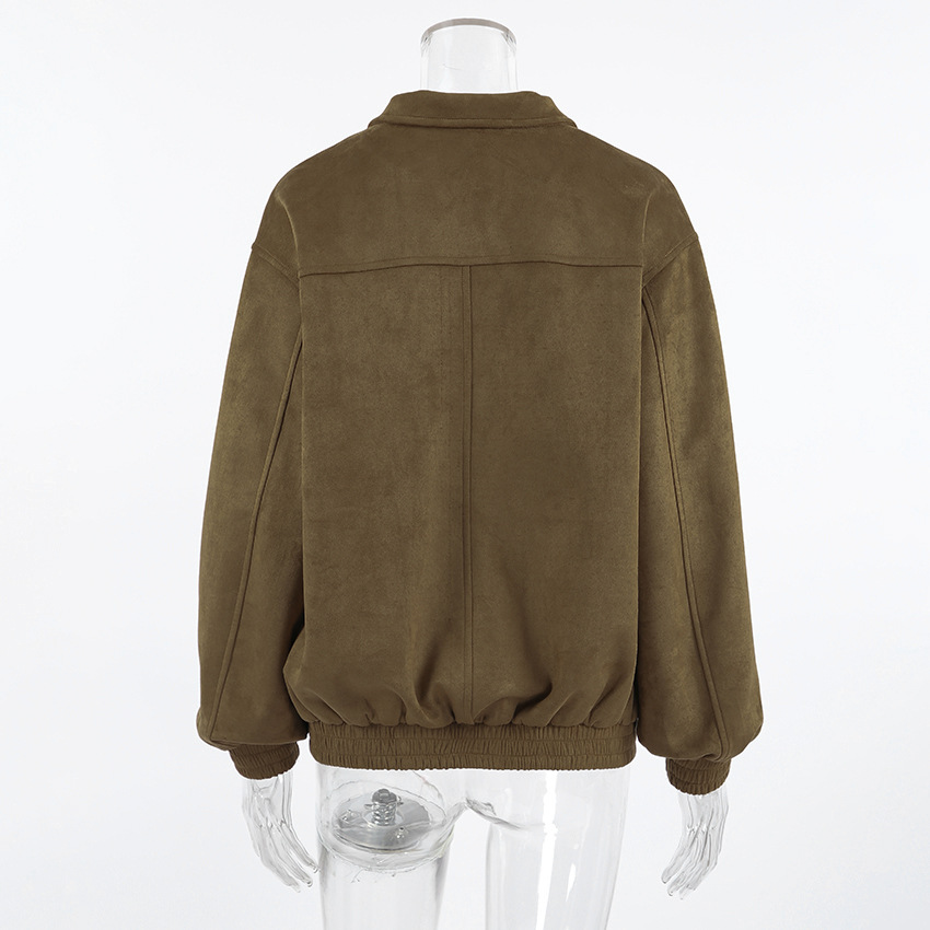 Women Jacket Retro Personality Street Khaki Suede Warm Jacket Autumn Winter
