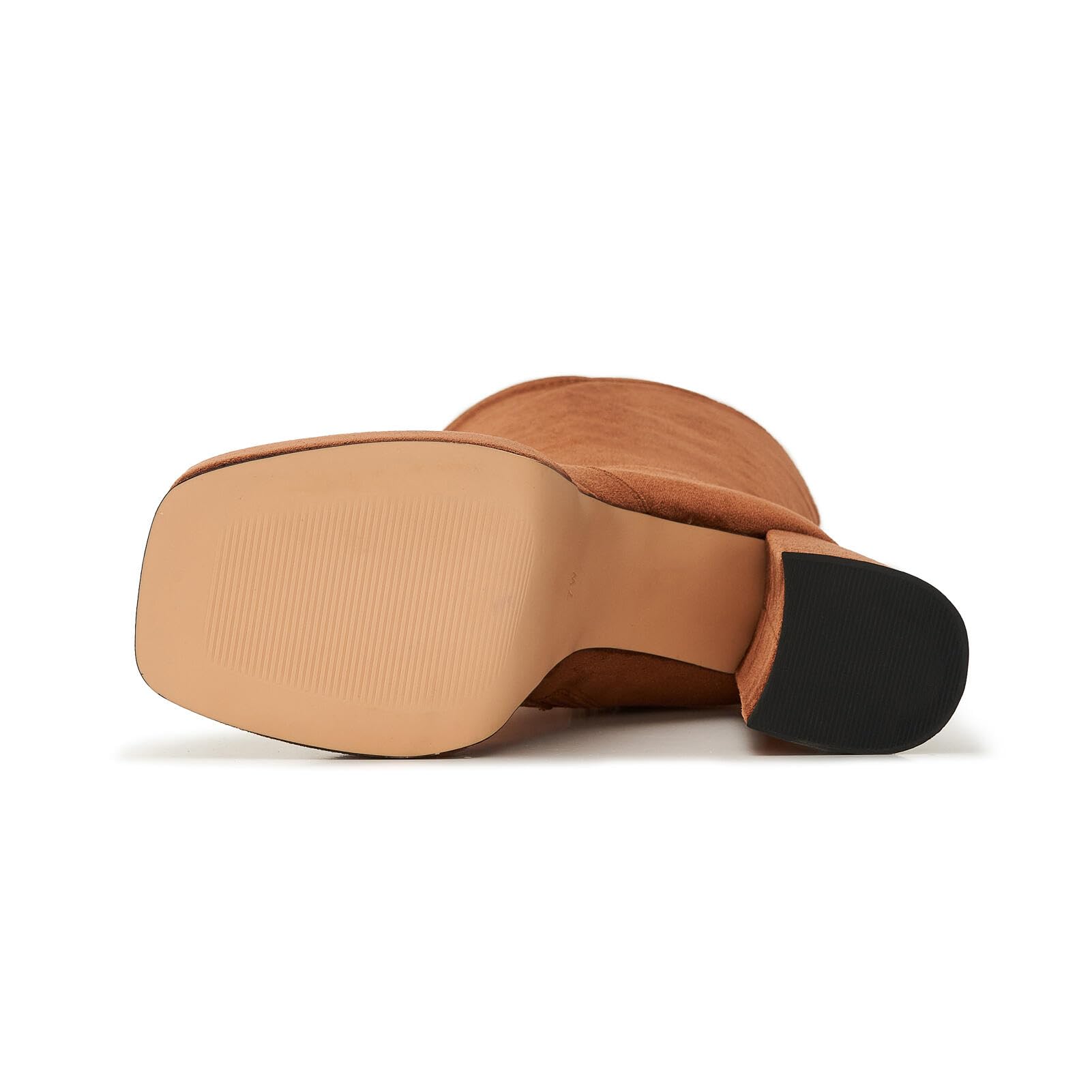 - Chunky Platform with High Block Heel – Featuring a thick platform sole and sturdy block heel, these boots offer stylish height and excellent stability for all-day wear.